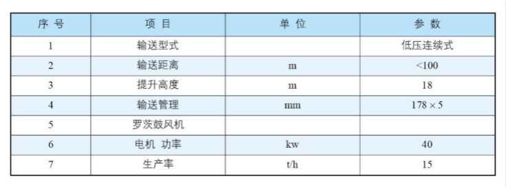 全自動(dòng)包裝秤ZHY系列低壓壓送氣力輸送系統(tǒng)主要技術(shù)參數(shù):