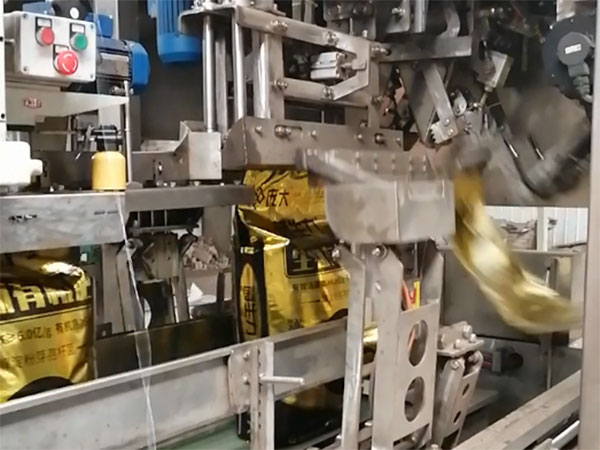 2)不合格自動剔除功能:包裝袋沒有正確地被固定到夾袋裝置上或包裝袋不符合規格,裝置即自動剔除包裝袋,信號告知稱重秤里的物料停止排放,等下一個正確的袋被正確地固定到夾袋裝置上時再充填;